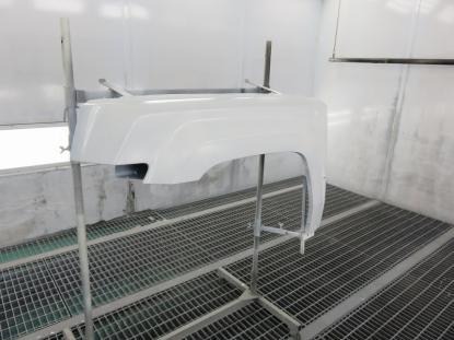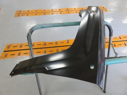 新品のフロントフェンダーに2液型のカラーサフェーサーを塗装します。 |