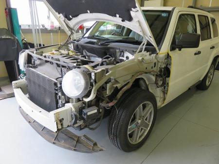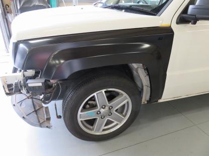 フロントバンパーから順番に取り外し、左フロントフェンダーの交換作業に移ります。 |
