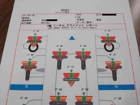 四輪アライメント調整を行ってから、完成検査やテスターを使ったチェックして完成です。 |