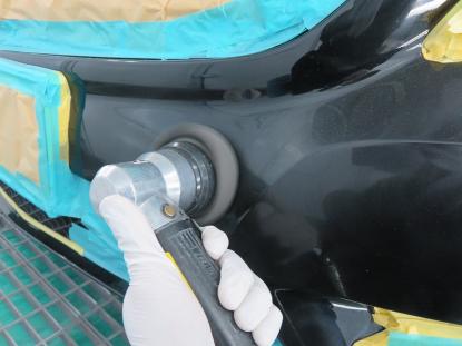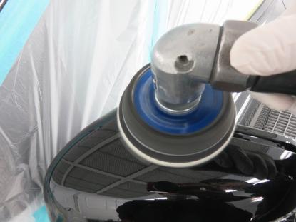 磨き作業です。ボディコーティングを施工する作業工程の中で最も重要であります。 |