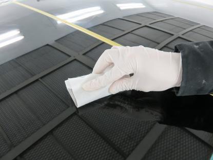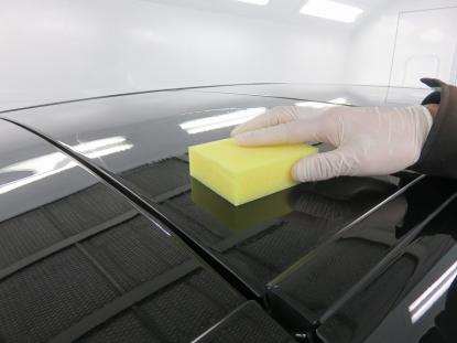 ボディ全体の汚れをシャンプー洗車した後、特殊なタオルで鉄粉を除去します。 |