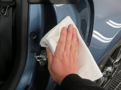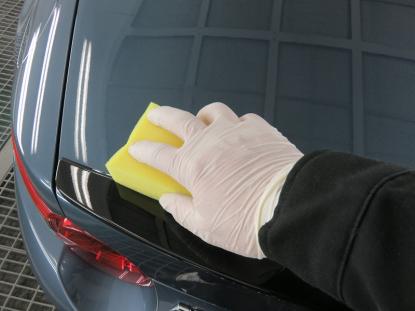 コーティング剤はボディ表面だけでなく、ドアの内側部分に至るまで、すみずみまで塗りこんでいきます。 |