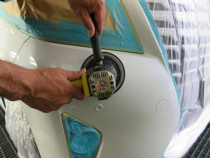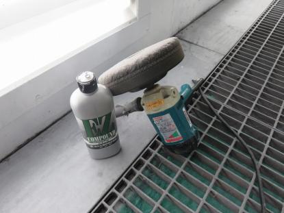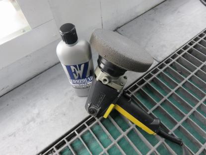 極細目のコンパウンドを付けたスポンジバフでボディ全体を磨きあげていきます。 |