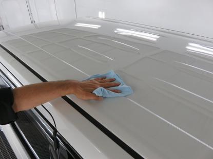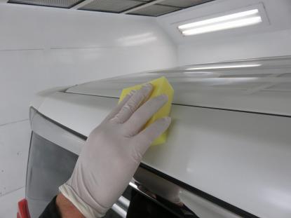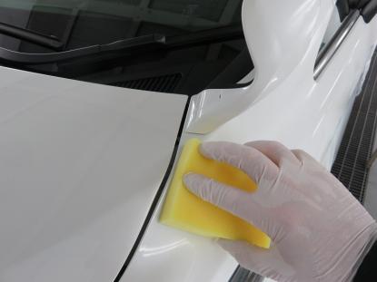 ボディ全体をシャンプー洗車した後、トラップ粘土や特殊タオルを使い鉄粉や汚れを落とします。 |