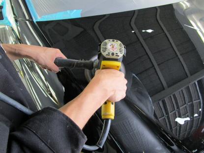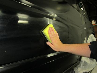 脱脂をしっかり行い、専用のスポンジでコーティング剤を隅々まで塗っていきます。 |