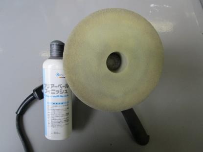 磨き作業です。まずは、シングルポリッシャーにスポンジバフを取り付け、極細目のコンパウンドで細かなキズを磨いていきます。 |