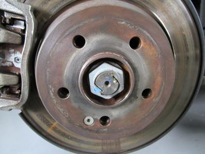 ご覧のようにハブの回りが錆びていては、綺麗に磨き上げたホイールが台無しです。 |