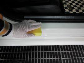 コーティング剤を塗りこんでいきます。ステップなどのボディ内側もきっちりと施工していきます。
