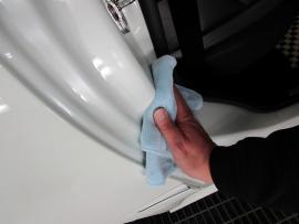 ボディ全体をシャンプー洗車して鉄粉等の汚れを除去してから、ボディのマスキング作業に取り掛かります。