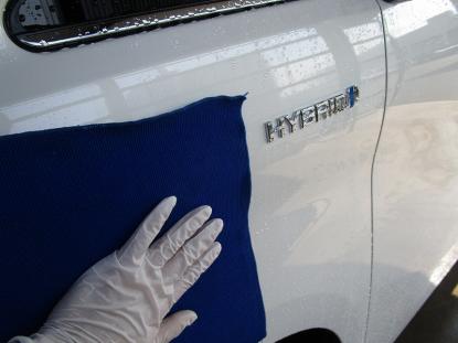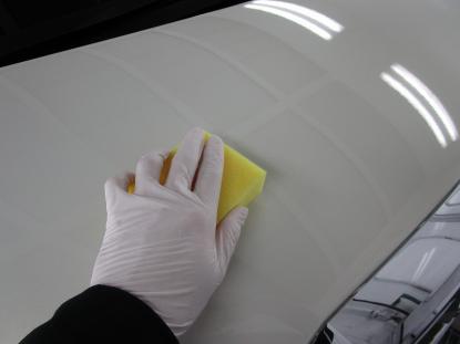 新車の状態ですが、ボディ全体をシャンプー洗車してからトラップ粘土や特殊タオルを使い鉄粉や汚れを落としていきます。