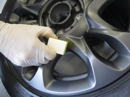 コーティング剤の表面が乾燥したらクロスで拭きあげホイールコーティングの完成です。 |
