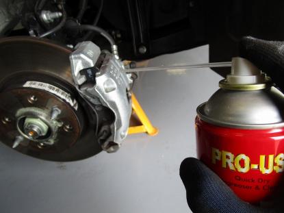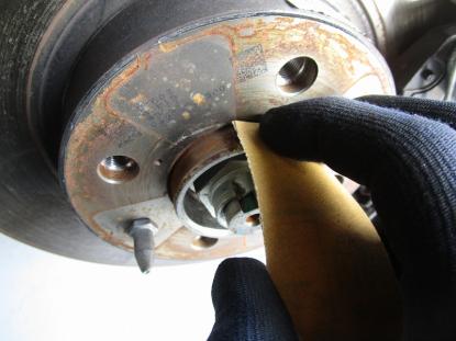 いつものことですが、綺麗になってホイールを取り付ける前に、ハブ廻りのサビ落としや、ブレーキ廻りの清掃を行います。 |