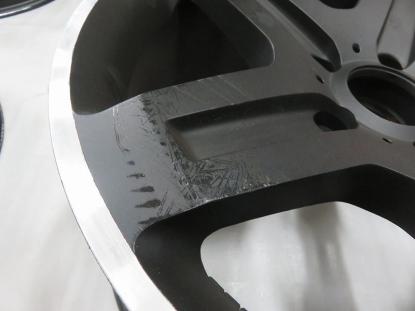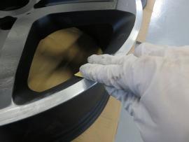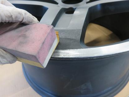 リムの部分に塗装の段差がありますので削って平らに仕上げていきます。 |
