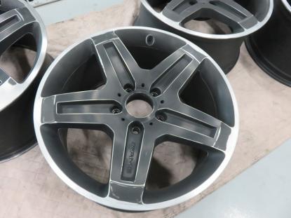 車両からホイールを取り外し、タイヤも脱着して作業の準備をします。 |