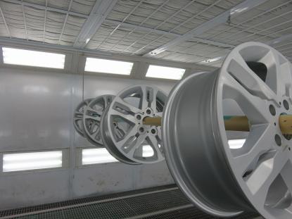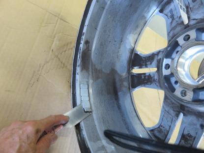 ホイール裏側にこびり付いている汚れをシンナー等で掃除します。 |