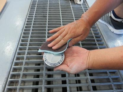 裏側やセンターキャップも手抜きせず、確実にサンディングします。 |