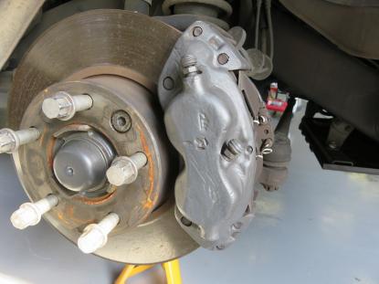 綺麗になったホイールを取り付ける前に、キャリパーの清掃を行います。 |