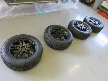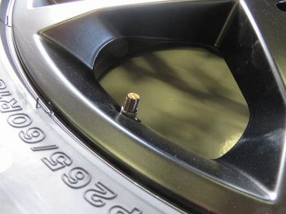 まず、ボディからホイールを取り外し、裏に貼ってあるホイールバランスをとるためのウエイトも取り外します。 |