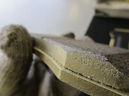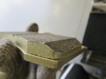 パッドの角を面取りしてからグリスを塗って交換の準備をします。 |