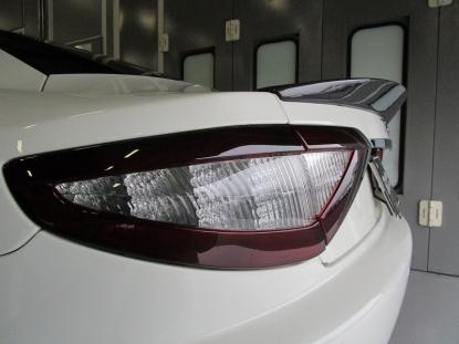 塗り分けした所のマスキング跡の段差を無くすため、最後にテールランプ全体にクリアーを塗装して仕上げています。 |