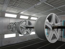 まず、ホイールからタイヤを取り外します。付着したブレーキダストや汚れを取りながら隅々まで足付けしていきます。 |