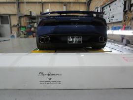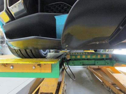 車両をリフトアップして、リヤディフューザーのフィッティングを行います。 |