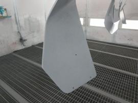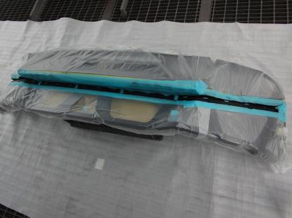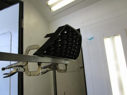 FRP製パーツの下地作業です。細かなピンホール等を確認しながら、表面をサンディングしていきます。 |
