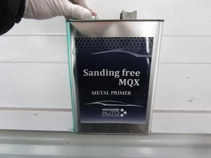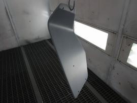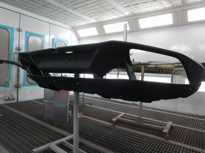 塗装ブースで2液型のサフェーサーを塗装します。 |