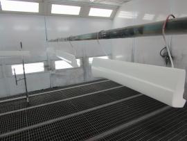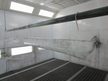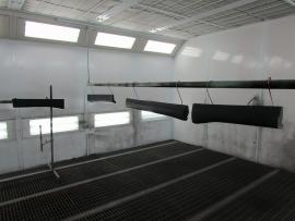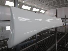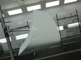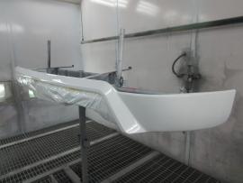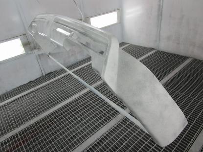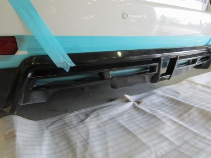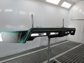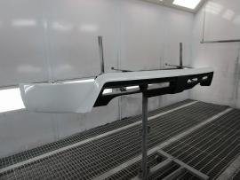 ゴミやほこりがシャットアウトされた塗装ブースの中で、ボディ同色で塗装する部分のペイントが完了です。 |