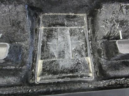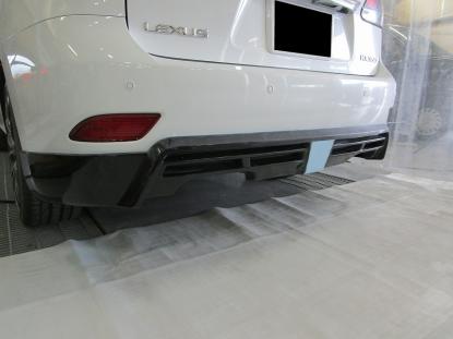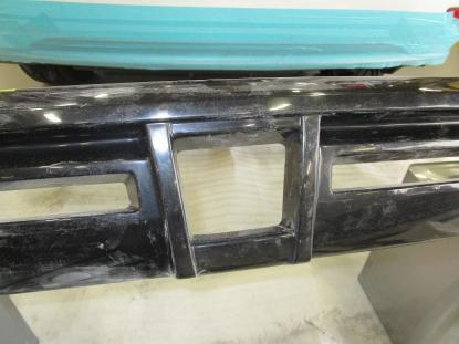 K様からリヤアンダースポイラーの真ん中に付くバックランプの穴を埋めてほしいとのご要望ですので、樹脂を塗ってからガラス繊維を貼り付けていきます。 |