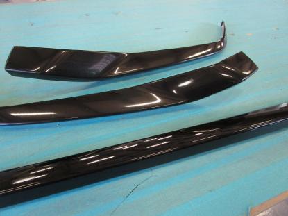 フロントバンパースポイラーはモデリスタを取り付けます。メッキ部分はラッピングフィルムで黒くするため、分解しておきます。 |