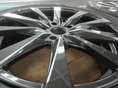 専用のクロスで拭きあげ、ホイールの撥水コーティングの完成です。 |
