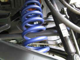 フロントのショックアブソーバーにH&Rのローダウンサスペンションに組み込んでいきます。 |