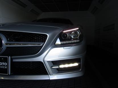 最後にヘッドライトのコーディングです。ヨーロッパ仕様のライト設定にするため、メルセデスベンツ専用のテスターを使い、コンピューターの中のプログラムを書き替えていきます。 |