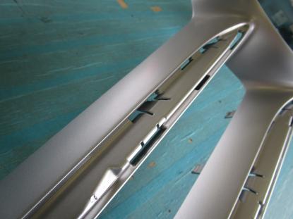 アールのきつい部分はフィルムを分割しながら貼っています。 |