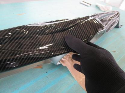 今回フィルムは、3M製のクレージーカーボンと呼ばれる(艶ありカーボン)もので施工しています。 |