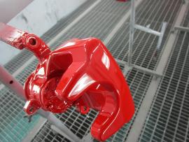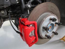 キャリパー本体は耐熱の赤色で塗装しました。 |