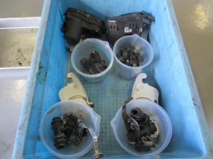 取り外したキャリパーからパッドなど細かいパーツを分解します。 |