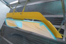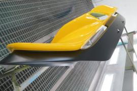 パーツの表面のデコボコをダブルアクションサンダーで削り落とし、小さなキズやFRP特有の巣穴と呼ばれる気泡のようなものをパテ等を使って丹念に1つ残らずなくす作業を行います。 その後、サフェーサーを塗装し、さらに小さな巣穴を見逃さないためにきっちりガイドコートで確認しながら水磨ぎします。 FRP製品は特にここの地道な作業(かなり大変)が仕上がりに大きな差を生みます。 |