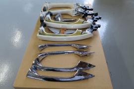 とりあえずフロントフェンダーの塗装が終わり、一緒にドアハンドルのメッキ部分を塗装致しました。 |