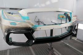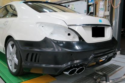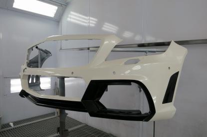 純正のバンパーを取り外し、WALDのエアロパーツを仮組みします。細かな隙間や立て付けを何度も繰りかえし合わせていきます。 |