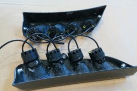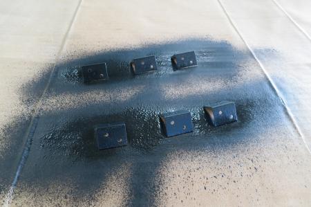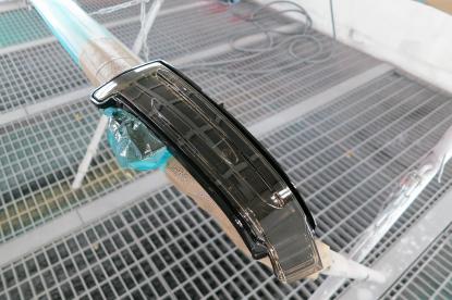 フロントバンパーに取り付けるLEDランプは、ステーが取付け出来ない為、このように強力ボンドで接着させます。 |