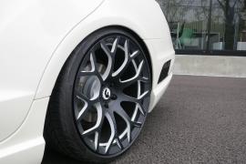 WALDロアリングキットを仮組みして、車高を調整します。ネジ式になっていますので、いくらでも調整が出来るところがいいですね!ホイールはFORGIATO社製のDREA-M 20inchiを取付けして完成となります。 |