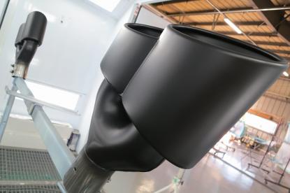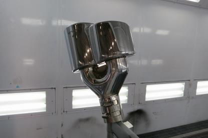 マフラーの出口は艶消し黒で耐熱塗装します。 |