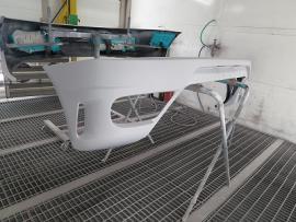 まず、車両から前後バンパ及びサイドステップとリヤディフューザー取り外し、ULTIMATEのパーツを仮付けして、隙間やチリ等を完璧に合わせていきます。 |