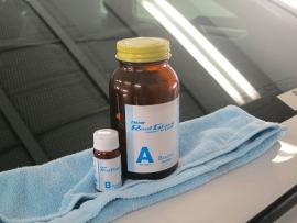 ボディコーティングを施工するためのマスキングしているところです。 |