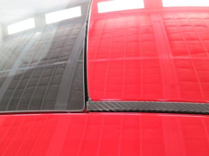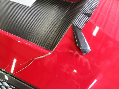 ルーフモールやフロントガラスの境目の細かい場所を最初に施工します。 |