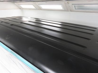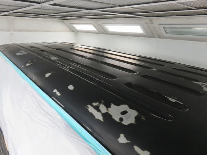 ルーフの修理です。よく見ると、塗装面の不具合はもちろんですがへこみも沢山ありましたので板金修理をしました。 |