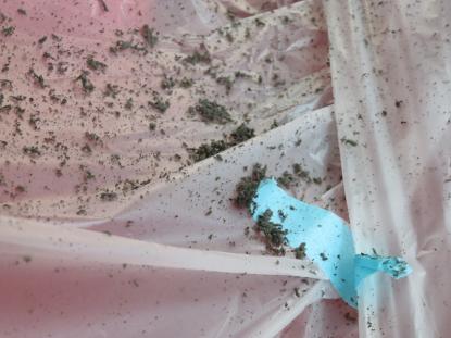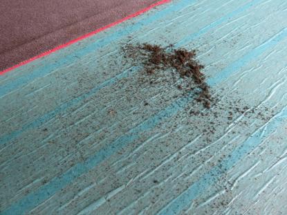 ご覧のような汚れカスを取り除き、ヘッドライングの掃除が完了です。 |