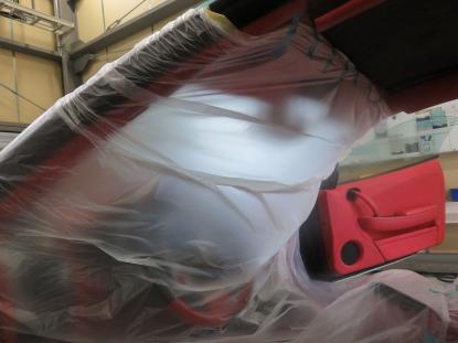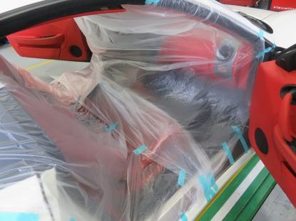 続いてボディ側のルーフ内側を掃除するためのマスキングです。 |